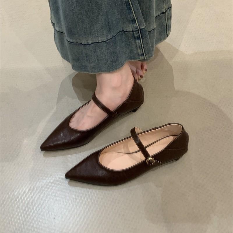 Pointed Mary Jane shoes women's shoes autumn 2025 new shallow mouth versatile thick heel with skirt one-word belt single shoes