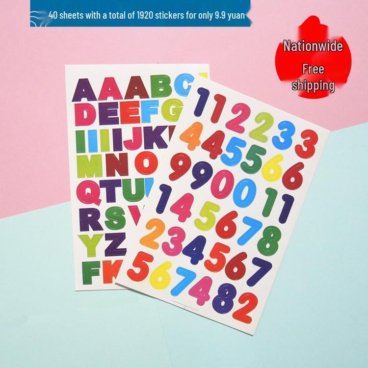 Self-Adhesive English Letter and Number Stickers for Children (0-9, A-Z)