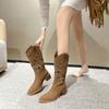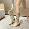 Fashion Women's Boots Trend 2024 Pointed Toe Mid-Calf Western Cowboy Boots for Women Embroidery Hollow Autumn PU Leather Female Shoes