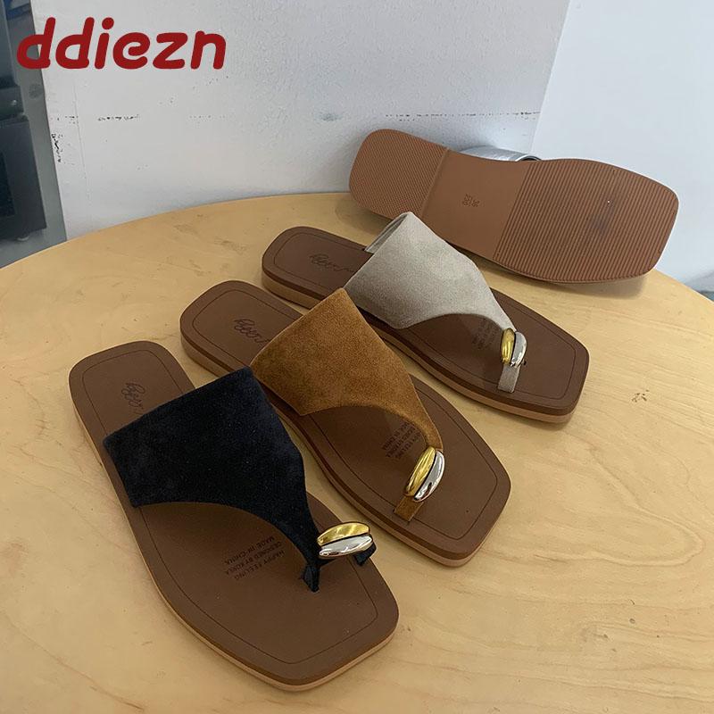Fashion New In Summer Beach Slides Ladies Flats Slippers Luxury Fashion Metal Women Flats Slippers Shoes Female Sandals Flip flops