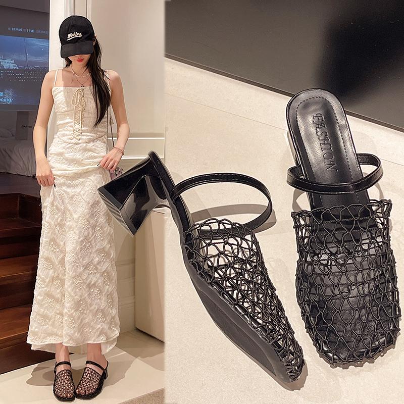 Fashion The 2025 New Summer Flat-bottomed Breathable Flip-flops for Women with A Niche Woven and Perforated Mesh Fabric