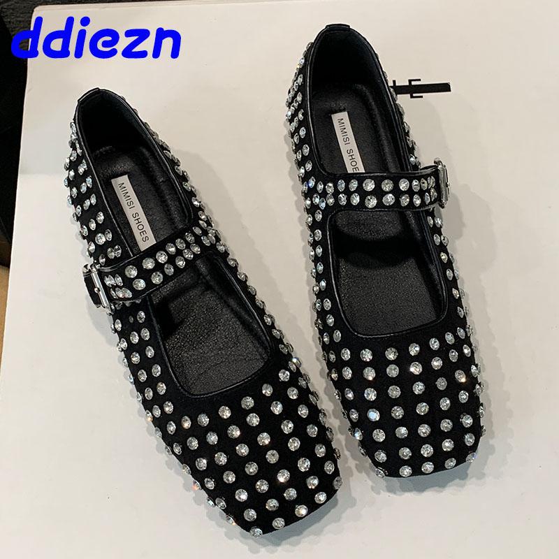 Fashion New Fashion Buckle Strap Mesh Women Mary Janes Crystal Shoes 2025 Luxury Female Shallow Footwear Ladies Flats With Shoes