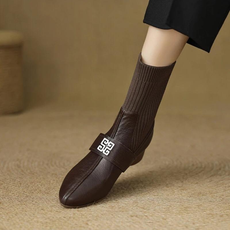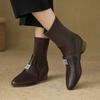 Fashion Women's Ankle Boot Mid Heel Fashion Square Toe Knitted Soft and Comfortable Breathable Stretch Boots 2024 New Female Footwear