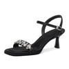 Fashion 2025New Style Luxury Rhinestone Dress Sandals Designer Girl Summer High Heels Black Suede Ankle Strap Buckle Party Shoes