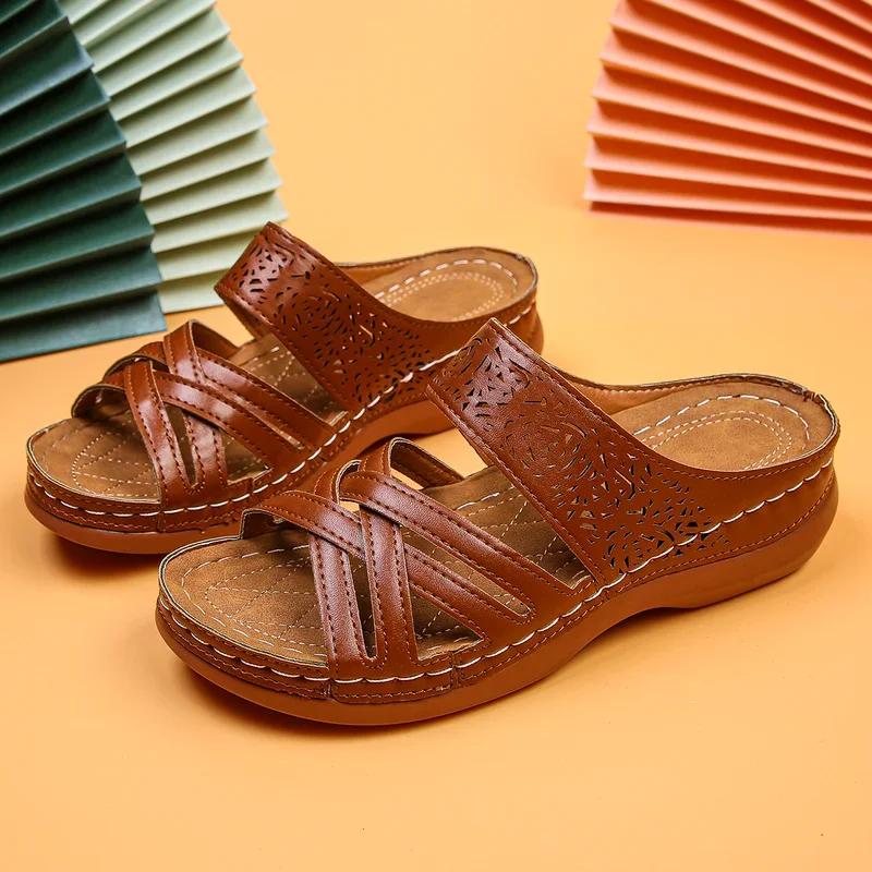 Móda Nové Dámské Prémiové Ortopedické Sandály s Otevřenou Špičkou Letní Vintage Protiskluzové Prodyšné Kožené Ležérní Dámské Platformové Retro Boty