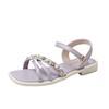 Fashion Women's Summer Sandals Fashion Square Head Shallow Mouth Crystal Thin with Soft Sole Anti-slip Wear-resistant Low Heel Shoes