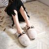 Fashion Bowtie Mink Fur flat shoes woman cozy plush winter moccasins female leahter patchwork furry loafers warm fur flats big size 43