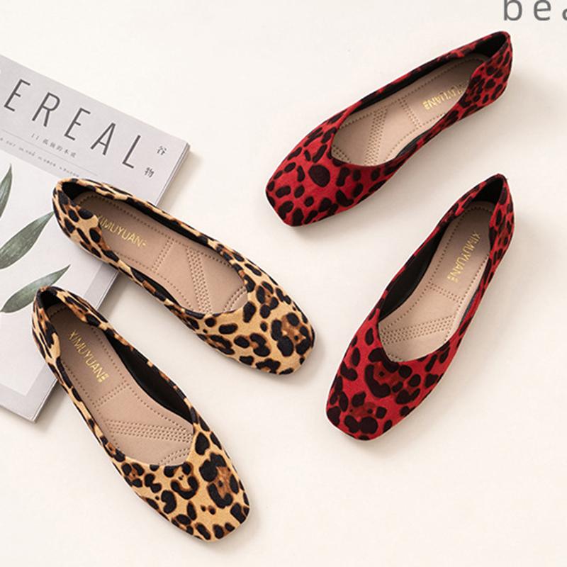 Fashion Big Size 35-43 leopard pattern flats woman ballerina flock shallow sneaker shoes women square toe soft soled moccasins femme2025