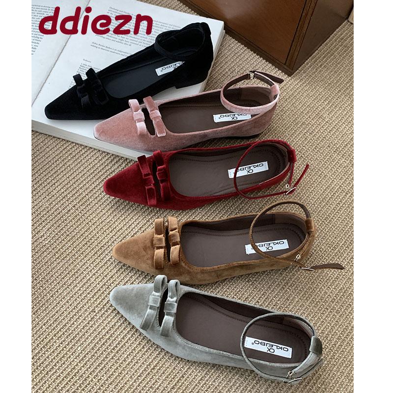 Fashion Footwear With Height Increasing Ladies Shallow Shoes Ankle Buckle Female Pointed Toe Fashion Silk Women Flats Shoes