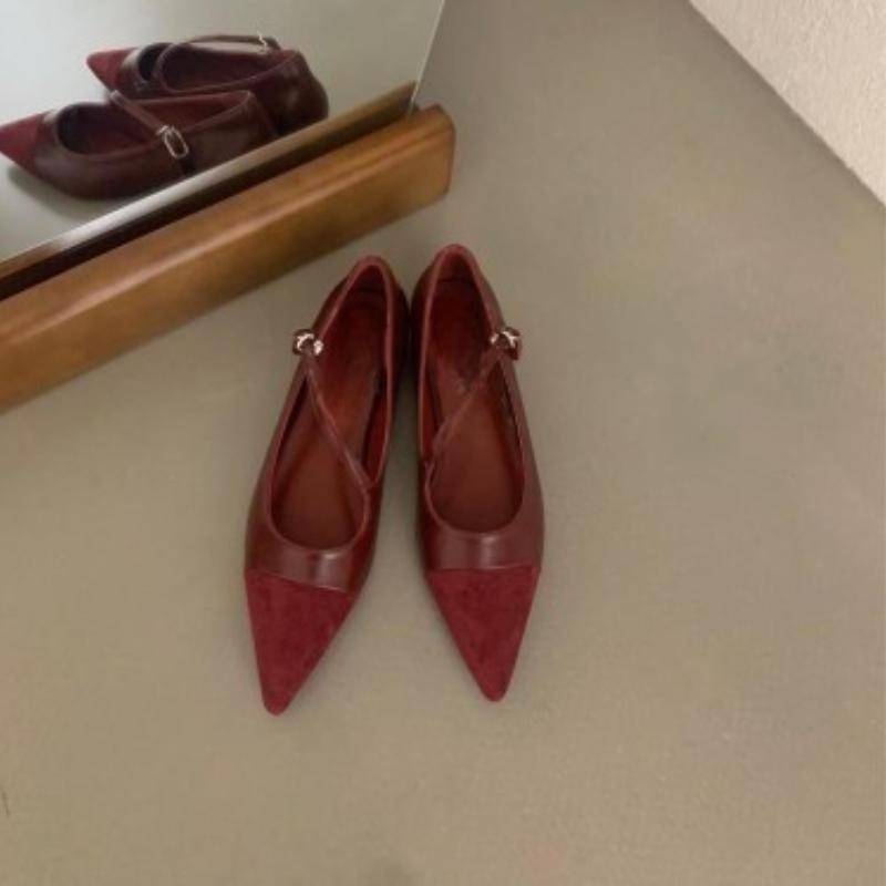 Fashion Single Shoe Women's Spring and Summer New Retro Brown Pointed Leather Shoes with Shallow Mouth Buckle Strap French Flat Shoes