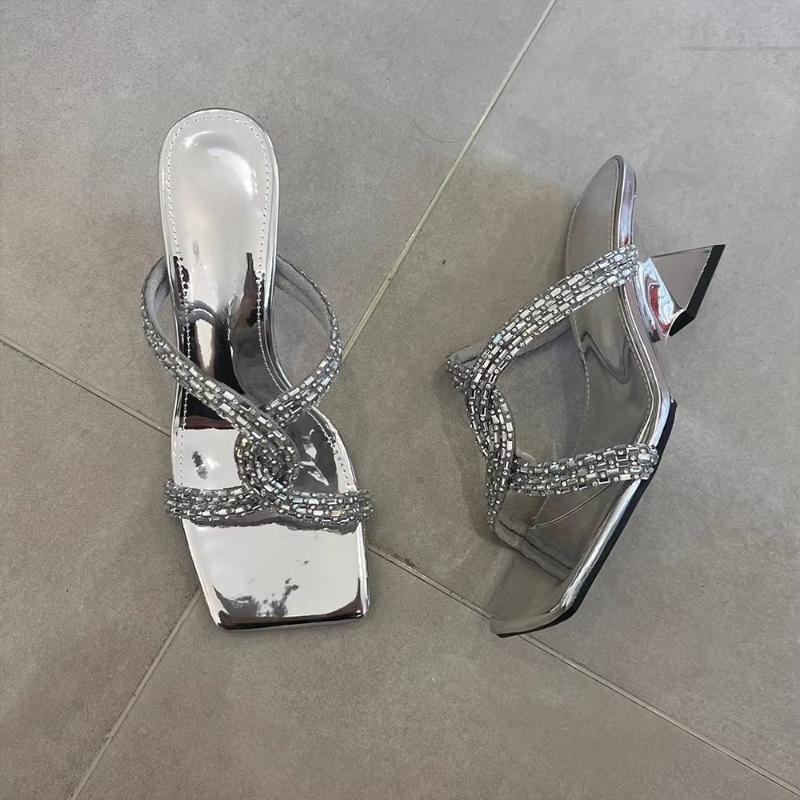 Fashion Women's Fashion Slippers Strange Style Square Toe Rhinestones Women Shoes Leisure Dress Summer Korean Style Zapatillas De Mujer