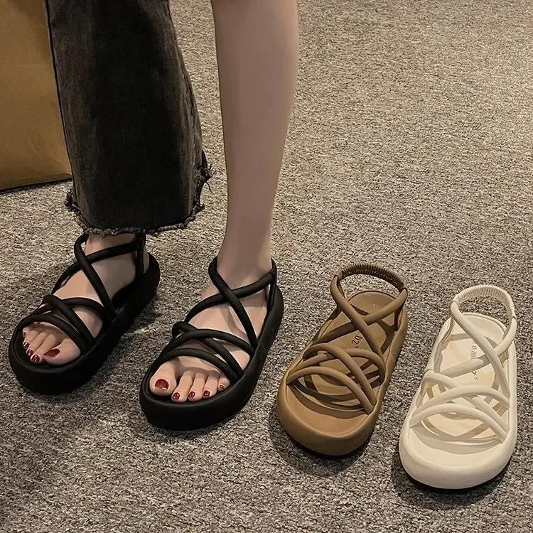 Fashion Versatile Womens Sandals Comfortable Roman Shoes Slip on Beach Shoes Thick Sole Women Shoes Summer New Zapatos Para Mujeres