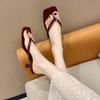 Fashion European American Fashion Clip on Flip Flops Women Summer 2025 New Fairy Style Square Toe High-heeled Sandals for Women