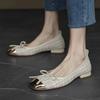 Fashion 2025 New Women's Pumps Fashion Low Heel Ballet Shoes Comfort Square Toe Shallow Lady Shoes Concise Metal Decorate Bowknot Flats