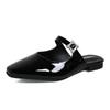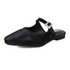 Fashion Square Toe Slip on Comfortable Mules Shoes for Women Diamond Buckle Outdoor Fashion Elegant Shiny Fabric Casual Ladies Flats