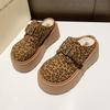 Leopardí baleríny Dámské pantofle na platformě Semišové pantofle Zimní plyšové bavlněné boty Vysoké podpatky Žabky Trend Slingback Zapatos Mujer