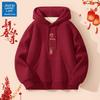 JEANSWEST LIFE Men's Winter Plush Hooded Sweatshirt with Lion Dance Graphic