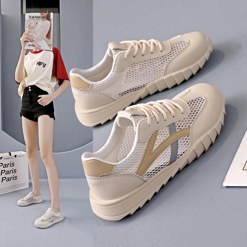 New cross-border large summer hollowed-out woven women's sports casual shoes light running shoes fashion White shoes