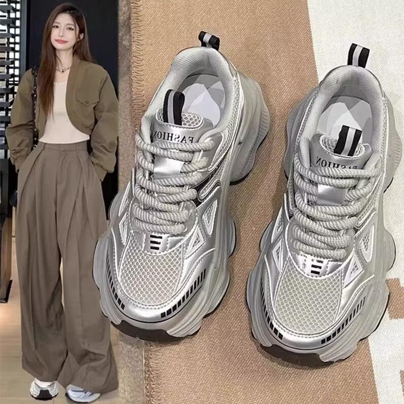 Pop Daddy Shoes Women Spring And Summer New Thick Sole Increase Mesh Breathable All With Light Sports Casual Shoes