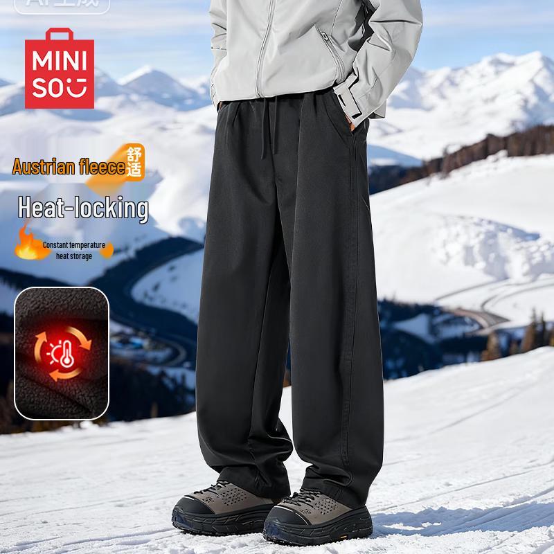 MINISO Men's Winter Loose Straight-Leg Fleece-Lined Casual Pants