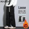 These men's trendy casual cargo pants feature a loose straight-leg fit, perfect for daily wear. Made from a comfortable, slightly elastic polyester-spandex blend, they offer both comfort and style. Available in both warm fleece-lined versions for cooler seasons and lightweight unlined versions for spring and autumn, these versatile pants are designed for youth and teenagers seeking a modern look. They come with a natural waist and a convenient drawstring closure, ensuring a comfortable fit.