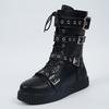 Large Size 42 Platform Mid Calf Boots Women Fashion Punk Rivet Knight Boots New Autumn Winter Women'S Thick Bottom Leather Shoes