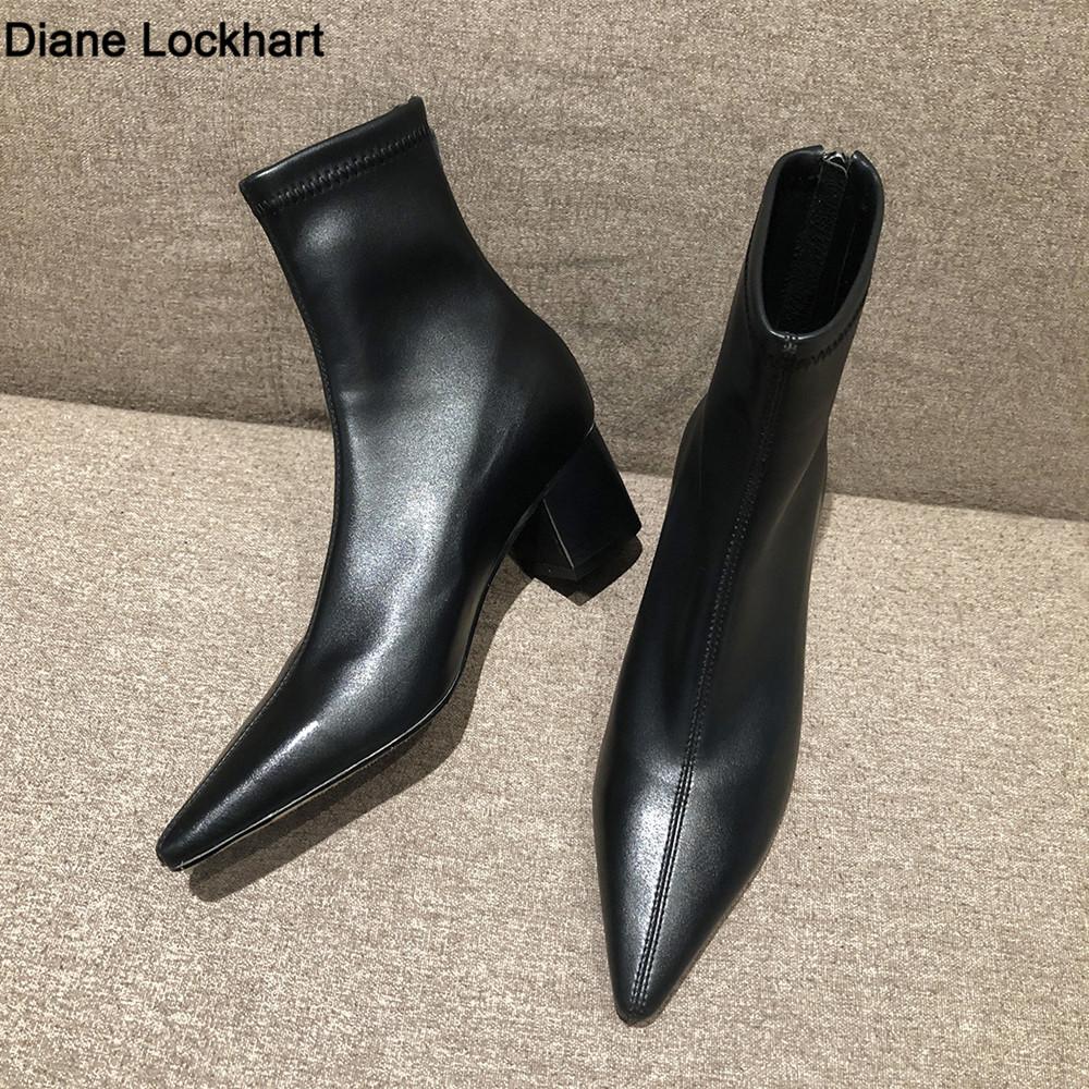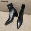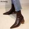 Autumn Winter Fashion Women Pointed Toe Yarn Elastic Ankle Boots Kid Suede Thick Heel Shoes Female Socks Boots Bota Femini