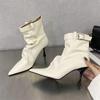 Eilyken Autumn Winter New Design Belt Buckle Pleated Women Ankle Boots Concise Pointed Toe Thin Heels Shoes De Mujer