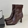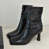 Eilyken Autumn Cozy Soft Pu Leather Ankle Boots Women Elegant Square Toe Stiletto Heels Fashion Zip Ladies Party Modern Shoes