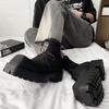 Black Large Square Toe Thick-Soled Chelsea Boots For Men In Autumn And Winter Men And Women New Leather Short Boots