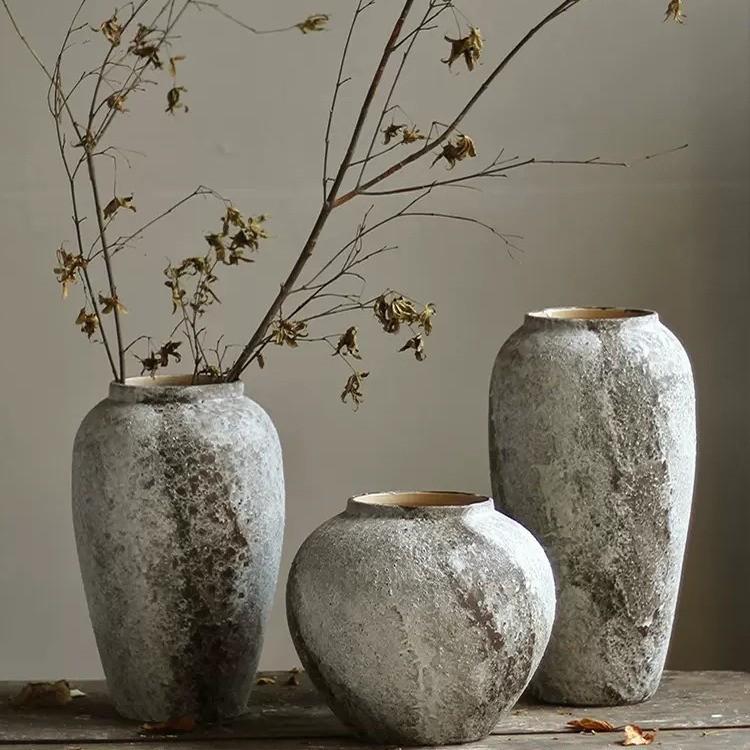 Wabi-Sabi Retro Chinese Ceramic Jar: Distressed Decorative Vase for Entrance, TV Cabinet, or Flower Arrangement.