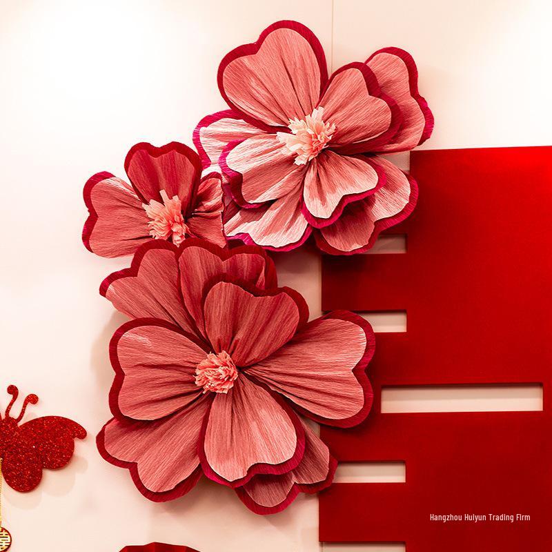 Wedding Room Crepe Paper Flower Decoration - Artificial Floral Arrangement for Bedroom Wall & Bedside, Engagement & Wedding Supplies