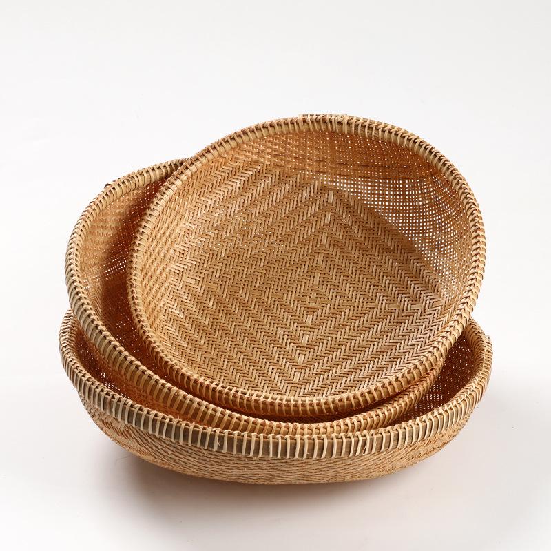 Handmade Bamboo Woven Basket for Fruits and Snacks - Round Living Room Storage Tray