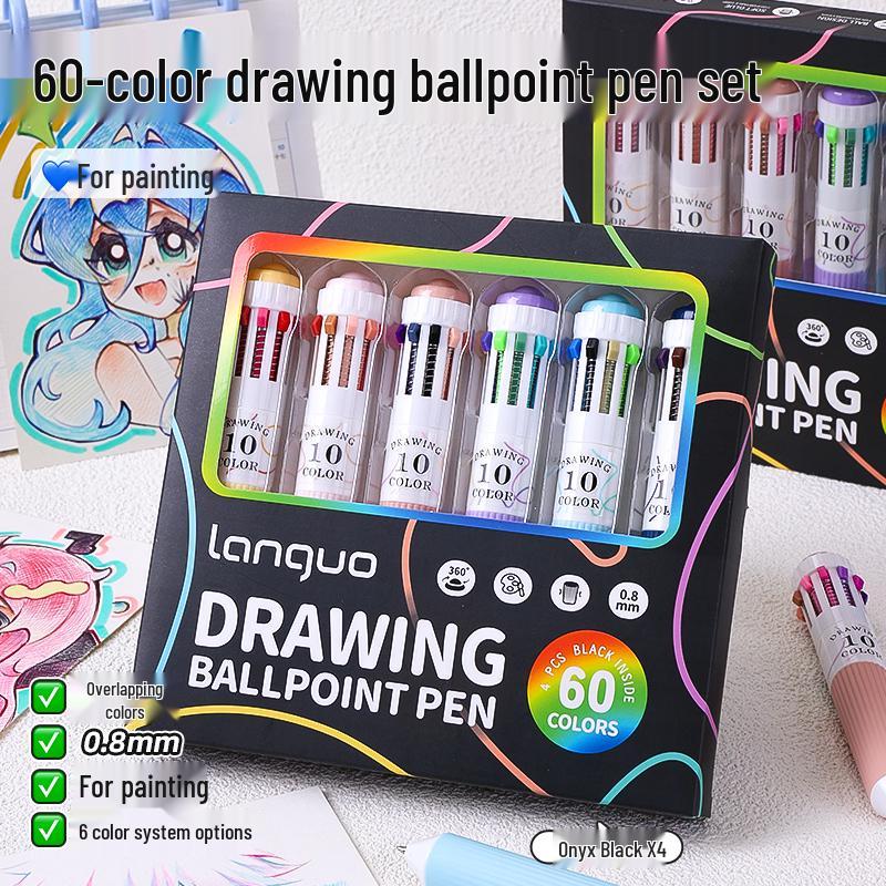 Modrý Fruit 60barevný vícebarevný set kuličkových per s měkkým úchopem - Stiskací psací nástroj 10 v 1