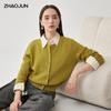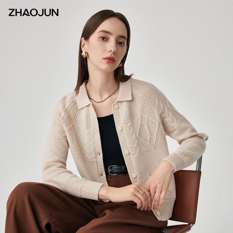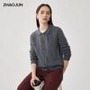 Zhao Jun Women's Thick 100% Wool Cable Knit Polo Collar Cardigan