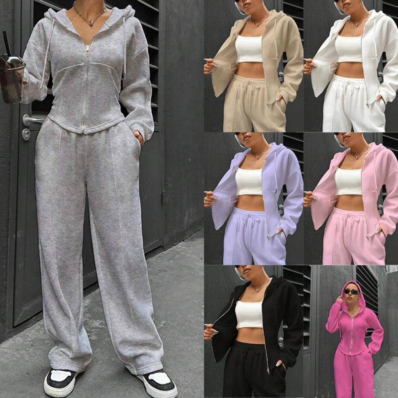Women's Light Gray Hooded Sweatshirt and Jogger Set, 6-Color Lounge Two-Piece Outfit