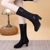 Women's Winter High-Heel Over-the-Knee Boots with Velvet Lining and Chunky Heel