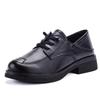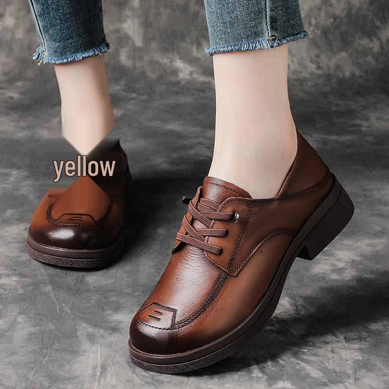 British Style Medium Heel Cowhide Loafers - Retro Round Toe Women's Leather Shoes