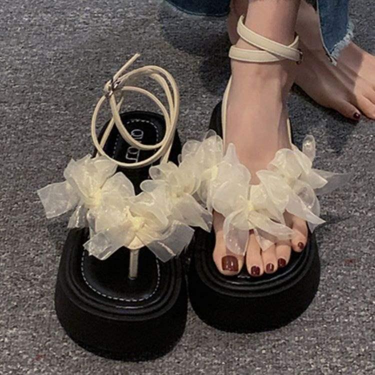 2024 Summer Exquisite Women's Fairy Sandals: Height-Enhancing, Thick-Soled, Bowknot Design, Perfect for Dresses and Beach Outings
