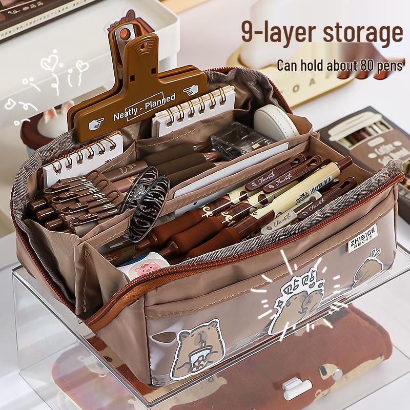 Kapybara Vícevrstvý Průhledný Penál - Velkokapacitní, Vysoce Hodnotný Organizér na Psací Potřeby pro Děti