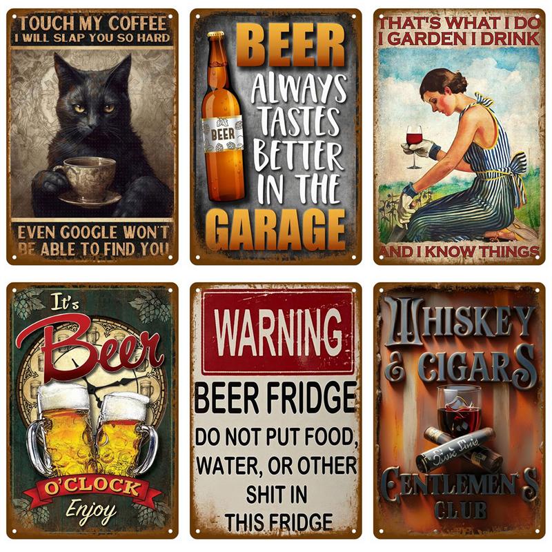 Retro Kovová Znamení Nástěnné Umění Nástěnná Malba Estetický Pokoj Domácí Dekorace Předměty Plakát Vintage Kovová Deska Garážová Dekorace Plechové Znamení Talíře Bar