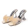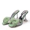 Fashion Size 34-46 Summer Party Slippers Fashion Green Rhinestone Bow Heels Sandals Women Square Open Toe PVC Transparent Shoes Slides