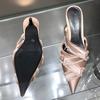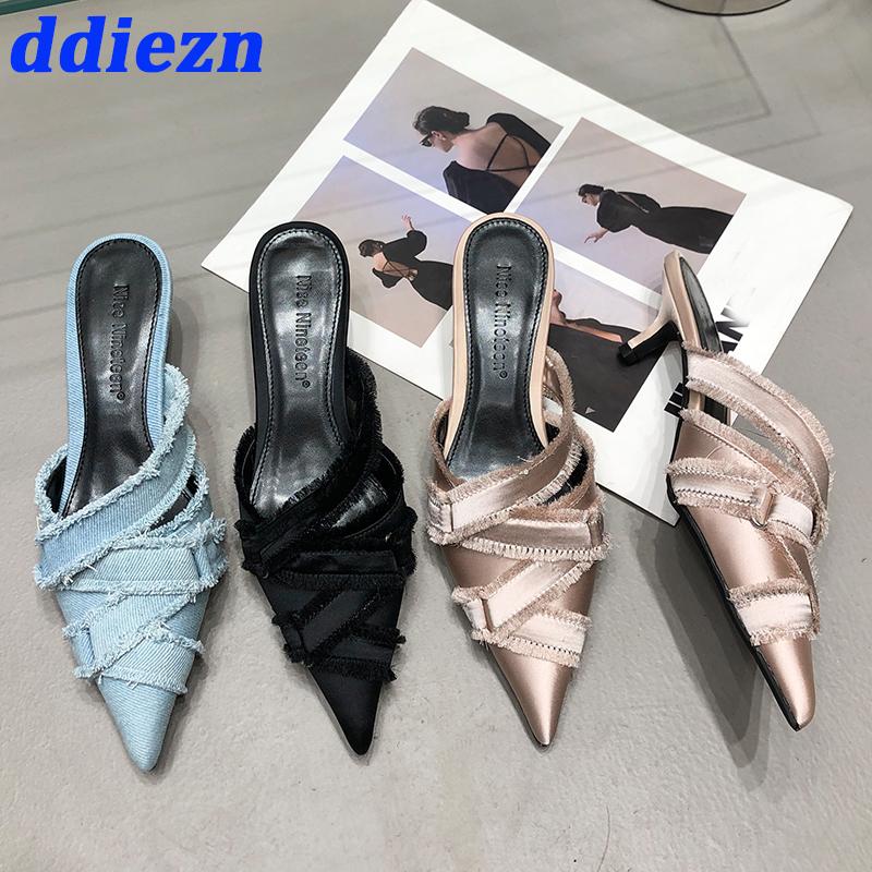 Fashion Medium Heel Shoes For Ladies 2025 Designer Fashion Denim Female Pointed Toe Pumps Heels Mules Slides Elegant Women Shoes