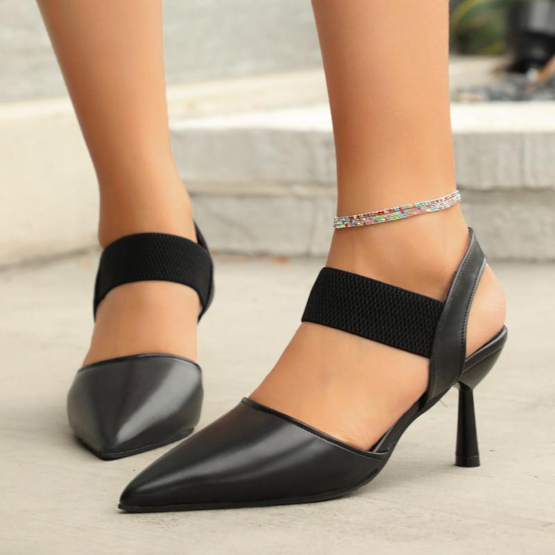 Fashion Women's Fashion Sexy Thin High Heeled Shoes Ankle Strap Empty Slingbacks Shoes Luxury Brand Pointed Toe Leather Shoes Zapatos