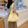 Small clear literary canvas bag women's summer 2025 new trendy Korean pleated tote bag versatile large capacity bag
