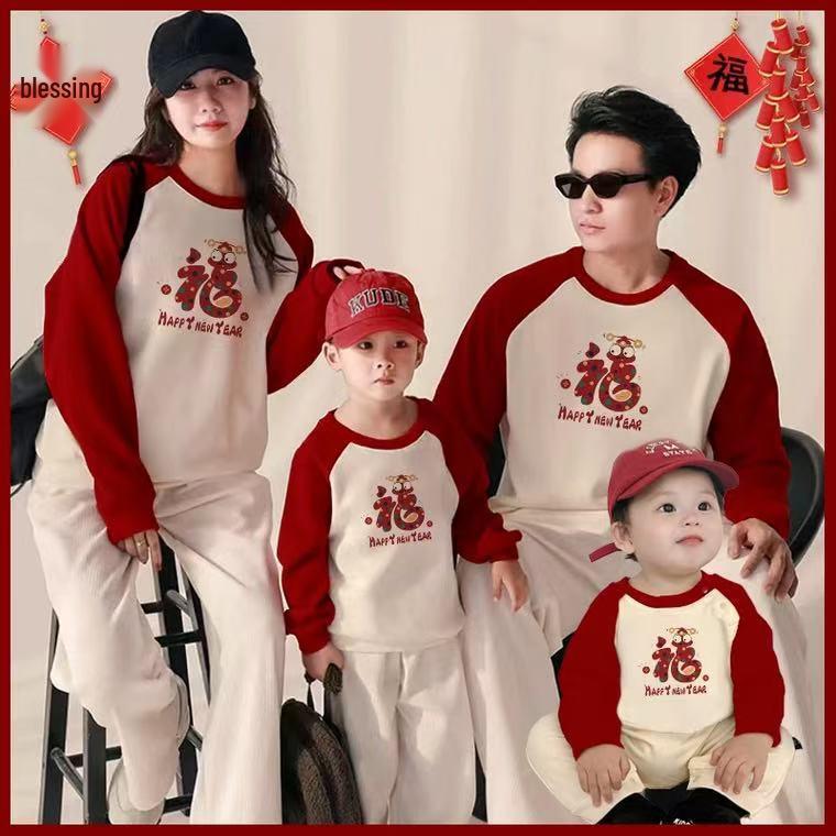 Celebrate the New Year in style with these charming family matching sweatshirts. Crafted from a cozy blend of cotton composite milk silk and cotton composite silver fox fur, these red fleece sweatshirts offer warmth and comfort for every family member. Featuring a playful printed decoration, these outfits are perfect for commemorating special occasions like a baby's 100 days. Available for families of three or four, they create a harmonious and festive look that's ideal for welcoming new beginnings together.