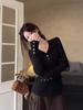Autumn new split hem long-sleeved T-shirt women's slim inner bottoming shirt black top