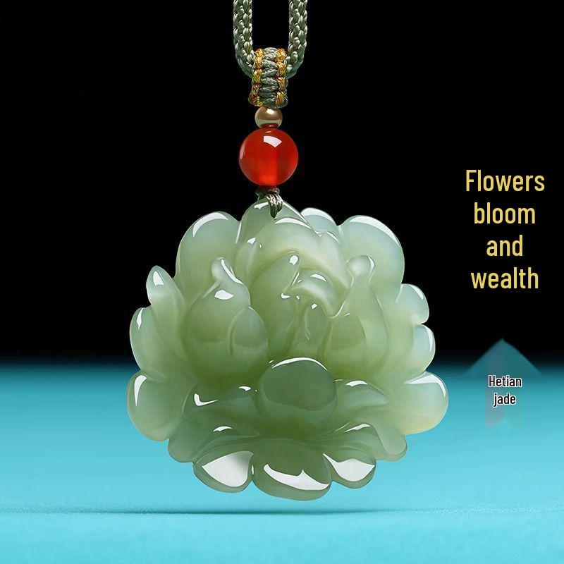 Hetian Jade Lotosový přívěsek Náhrdelník - Zelený nefrit pro muže a ženy
