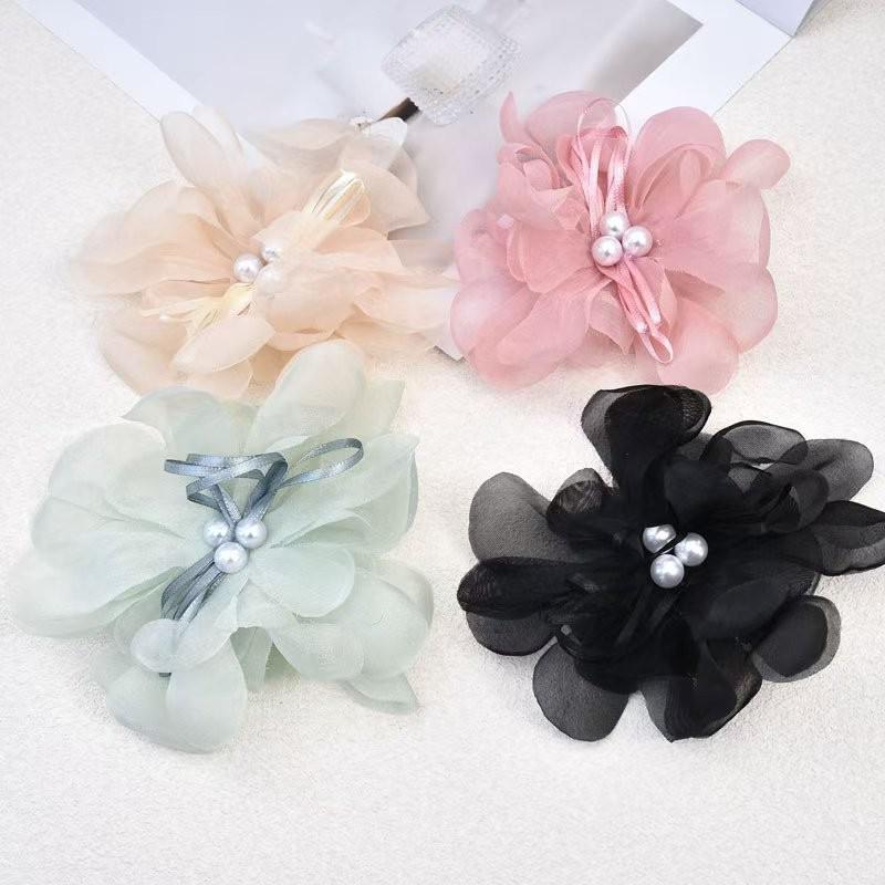 Ručně vyrobená mašle z perlové příze: Organzová květina pro vlasové a oděvní doplňky, šperky a DIY řemesla