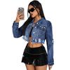 Tato stylová džínová bunda je navržena pro ženy, které milují dělat módní prohlášení.. Je vyrobeno z vysoce kvalitní bavlny a má jedinečný třásňový design s trháním, který dodá vašemu outfitu trendy šmrnc.. Dlouhé rukávy nabízejí pohodlný střih, zatímco přizpůsobený výstřih dodává nádech sofistikovanosti.. Tato bunda, ideální pro vrstvení, hladce spojuje ležérní šarm s moderním stylem, což z ní činí nezbytný doplněk vašeho šatníku.